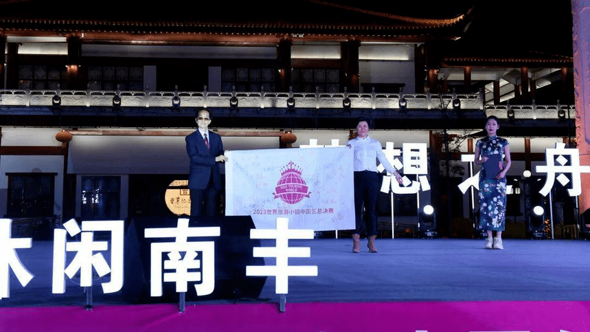 入城仪式中,邓宗德向南丰县赠送了2023世界旅游小姐大赛会旗,副县长王丽红上台接旗,并代表南丰县赠送一套白舍窑瓷器给2023世界旅游小姐中国区总决赛组委会。