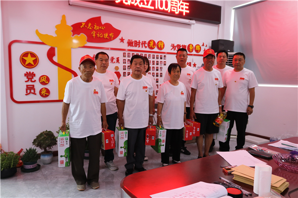 2021年7月1日上午为庆祝中国共产党建党100周年,唐山市路北区韩城镇后城河村举行了,庆祝中国共产党建党100周年曁颁发“光荣在党50年”纪念章活动。本次活动组织了五个议程,一是为党员发放建党100周年定制服装,二是宣读与党同心同庆共创美好家园倡议书,三是发放利康医院50周岁以上党员免费体检单,四是党支部书记张昆做党史学习宣讲报告及重温入党誓词。五是观看《党建伟业》电影。
