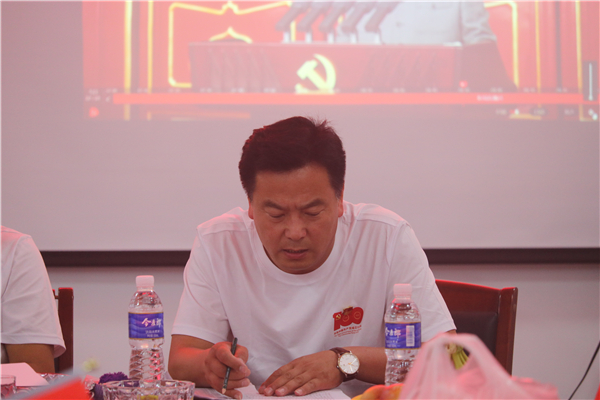 “同庆百年华诞 不忘初心使命”全体党员面对党旗由后城河村党支部书记张昆领誓,重温入党誓词。大家随后观看了《建党伟业》电影。
