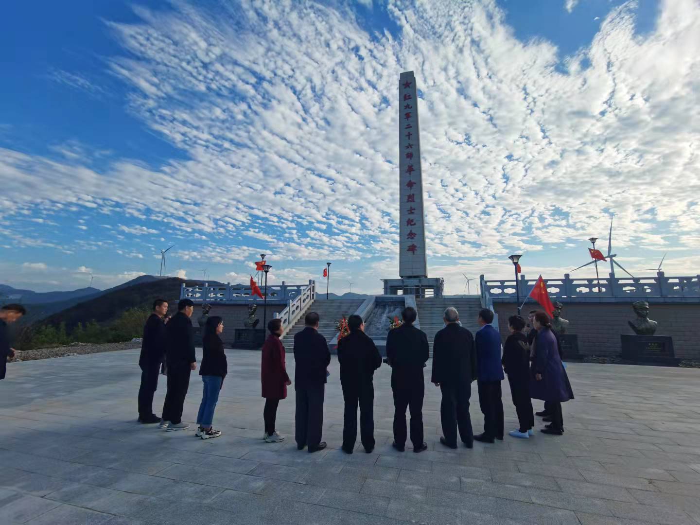 在黄龙镇向湾村正在建设的中国工农红军第九军第二十六师革命烈士纪念碑前,省、市老促会领导听取了该镇党委书记杨再佳关于红色文化项目介绍。