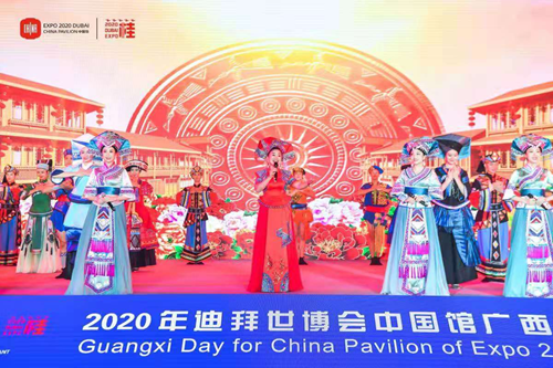迪拜世博会中国馆广西活动,由广西壮族自治区人民政府主办,采用线下线上相结合的方式进行。线下在广西南宁举办广西活动日开幕式、中国(广西)商机推介会、文化展演等内容,并在迪拜世博会中国馆举办现场展览展示;线上举办为期7天的中国广西(阿联酋)国际商品展等活动。