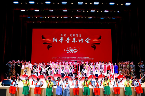 为迎接2022年新年到来,助力北京冬奥会,1月11日下午,由吉林省全民阅读协会朗诵艺术专业委员会、吉林省文化艺术志愿者协会主办,吉林省现代交通技工学校、吉林省战鹰文化传播有限公司、长春市妇女儿童活动中心声乐班、长春市退役军人就业创业促进会军事训练教官培训基地承办,长春国信集团、金钰集团协办的“万众一心跟党走”二〇二二吉林省新年音乐舞蹈诗会在长春国信南山大剧院举办。
