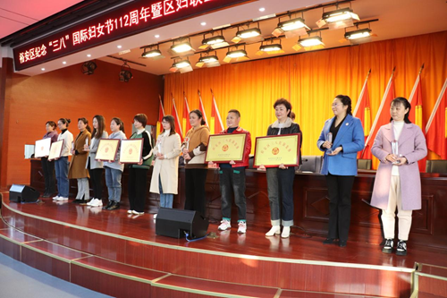 周泽道代表区委区政府向全区广大女性和妇女工作者致以节日的问候,向受表彰的先进集体和个人表示热烈祝贺,充分肯定2021年区妇联工作所取得的成绩,并对今后工作提出四点要求:一是强化政治导向,做妇女思想进步的“引路人”。二是强化发展导向,做妇女创新创业的“贴心人”。三是强化服务导向,做妇女可亲可靠的“娘家人”。四是强化实干导向,做妇女事业发展的“带头人”。