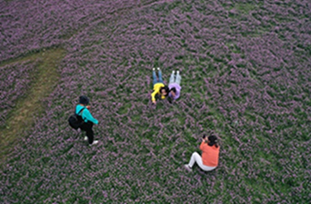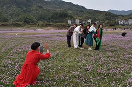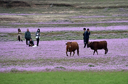 每到三月,江西省上饶市广信区湖村乡茗洋水库干涸的库尾,数百亩紫云花沐浴着春风蓬勃地生长,远看像铺在地上的紫绿相间的地毯,蔚为壮观,成了市民踏青春游的好地方。