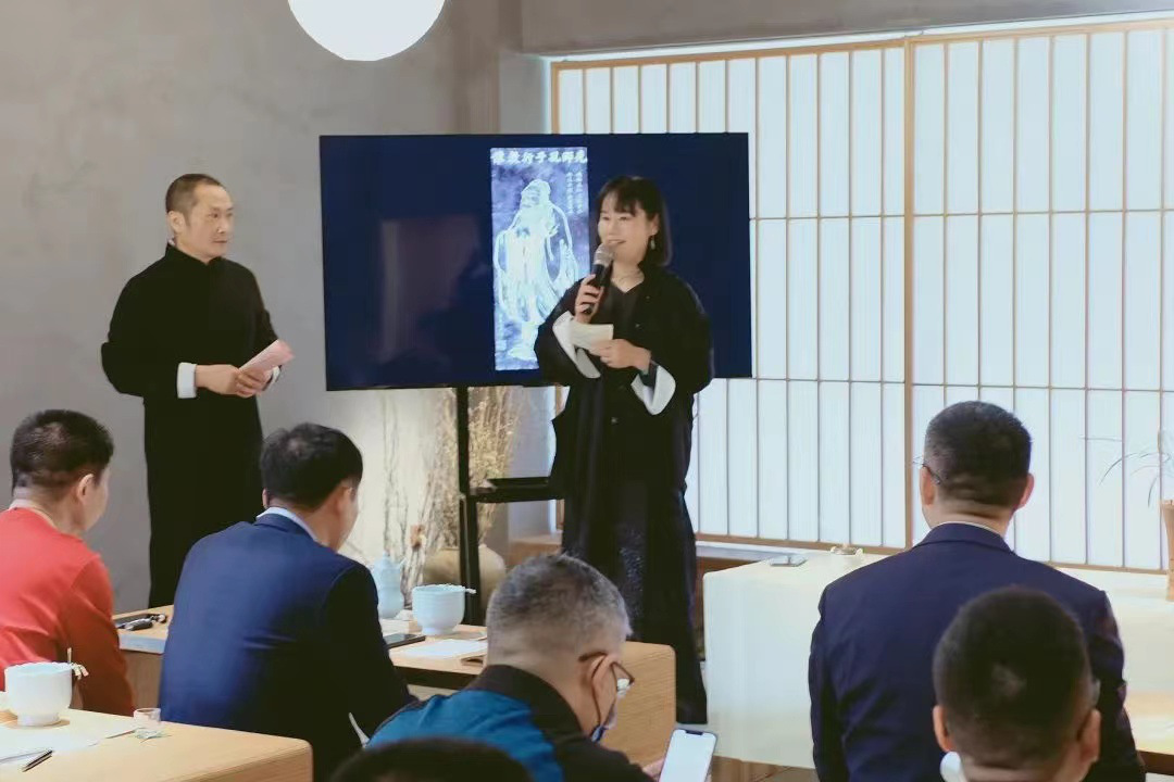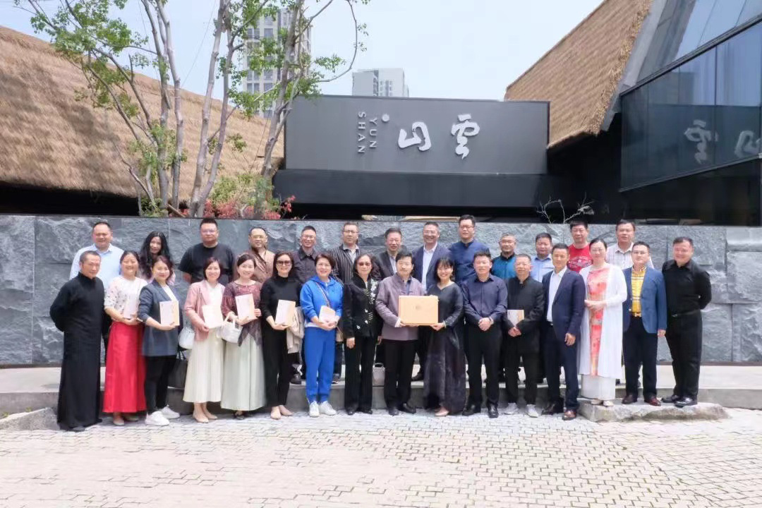 活动现场,湖南大学岳麓书院副院长、湖南省孔子学会副会长兼秘书长陈仁仁先生,学会副会长、国学研修中心副主任、湖南丁字建筑集团总经理邹建成先生,湖南省辰波建设有限公司名誉董事长、总经济师聂志强先生,云山院主理人夏丹女士共同为湖南省孔子学会云山院国学研修基地揭牌。
