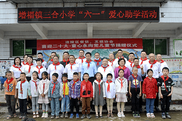 在“六一”儿童节即将到来之际,5月31日,重庆市涪陵区餐饮(商)协会、区文娱协会企业家一行在会长刘明杰的带领下来到增福镇三合小学、新妙镇两汇小学校开展了“‘六一’儿童节爱心捐赠”活动,向学校捐赠了学习和生活用品,并走访慰问了8户特殊困境儿童家庭,向每户家庭捐赠了1000元慰问金。