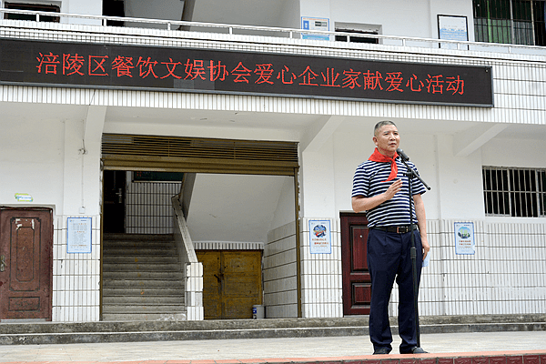 涪陵区人大常委、民建涪陵区委副主委、涪陵区餐饮(商)协会会长,涪陵区文娱协会会长、川东坝子董事长刘明杰说:“尊师重教,崇尚教育是中华民族的传统美德和全社会的共同责任。今天,爱心企业家们与学校建立了‘献爱心’的良好关系,今后将一如既往的促进这项活动的深入开展,以实际行动为社会作出应有的贡献。”