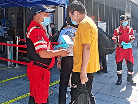 一大早,涪陵区应急管理局华岩应急救援队一行16人,分别在高山湾枢纽站、涪陵高速收费站、白鹤梁水下博物馆、涪陵城区等路段,为外出务工的候车人员免费发放口罩,在高速收费站外为过往涪陵的司乘人员普及宣传疫情防控,在白鹤梁水下博物馆宣传交通安全知识,在城区路段向没有佩戴口罩的司乘、过路人员免费发放口罩,引导他们科学佩戴口罩,并提醒司机遵守交通法规,杜绝超速行驶、酒后驾驶、不系安全带等违法行为。
