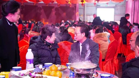 团拜会上除了美食佳肴,还有歌舞升平。销售团队一首《真心英雄》唱出了销售人员的士气和果敢;仓储部一曲《万疆》舞蹈,舞出了生活的快乐与情怀;生产一部《眉飞色舞》舞出了人生的激情;质管部舞蹈《灯火里的中国》道出了对祖国的美好祝福以及对未来的欣然向往;最后,管理团队大合唱《众人划桨开大船》唱出了金宫人的众志成城、团结一致。