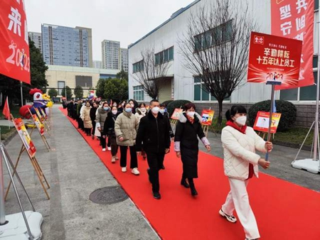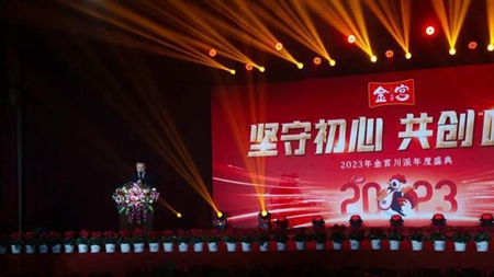 共工日报社四川1月14日(范琦 龚国林)1月14日,四川金宫川派味业有限公司“坚守初心,共创味来”年终盛典在金宫川派味业温江总部产业园盛大举行。来自全国各地区的约400位金宫家人齐聚一堂、互话家常、互致新春问候、共享年终盛宴。