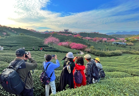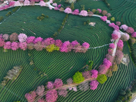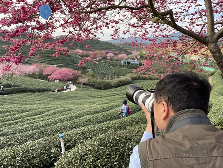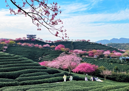 这是2023年2月17日在福建省漳平市永福镇的台缘山庄永福樱花园拍摄的一组画面。(艾世民摄影报道)