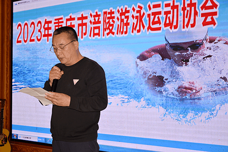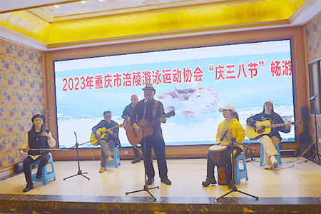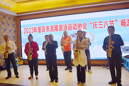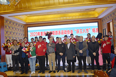 下午6点,在2023年重庆市涪陵游泳运动协会“庆三八节”畅游联欢晚会上,涪陵区游泳运动协会会长何家会在致辞中说:“协会的发展靠大家、协会的团结靠大家、协会的精气神靠大家!我们将用欢声笑语、载歌载舞共同庆贺这个特别的‘三八’节日,祝各位女神节日愉快!健康快乐!”
