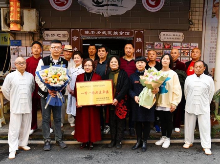 李社长一行前往合川区白菜园,看望了侨爱心·陈老乡合川区办事处秘书处人员,与十多名陈老乡(陈青云)武术弟子和秘书处人员合影留念,陈革师姐肖天亮与易妍希代表师兄韩常庆介绍了陈革在赞比亚用武医服务当地群众,助力一带一路工作,传承推广中国传统文化的事迹。