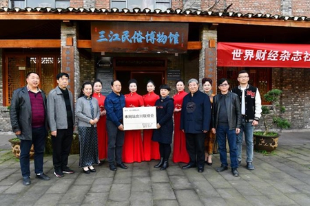 《世界财经》杂志社常务副社长李小玲等与合川三江民俗博物馆负责人冯开志等合影
