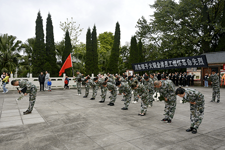 接着,川东坝子董事长刘明杰带领大家向革命烈士们三鞠躬。