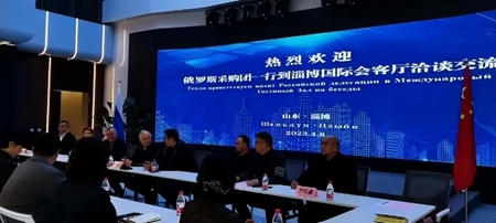 全俄中小企业联合会监督委员会会长谢尔盖·雷纳托维奇·巴利索夫率领的考察团一行,相继到淄博国际会客厅参观并座谈交流,考察了宝恩皮革集团,拜访了淄博市贸促会相关领导。贸促会负责人向考察团介绍了淄博特色优势产业、产品,双方就下一步合作对接等业务达成了合作意向并确定订单细节。