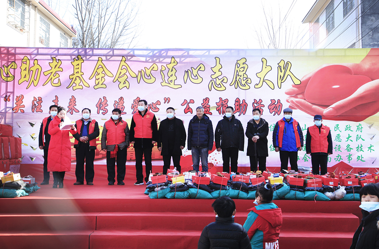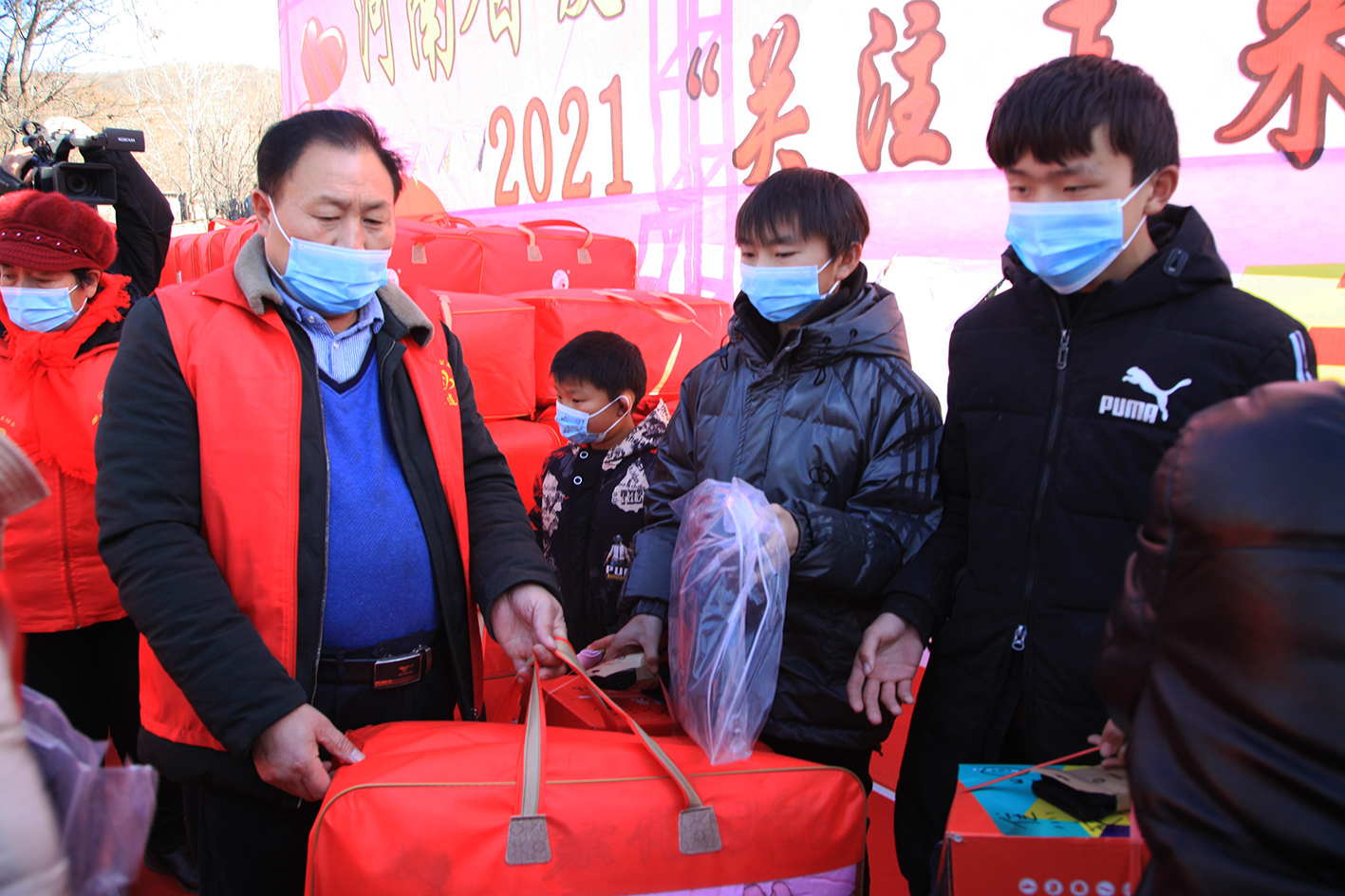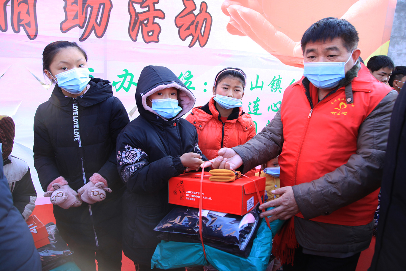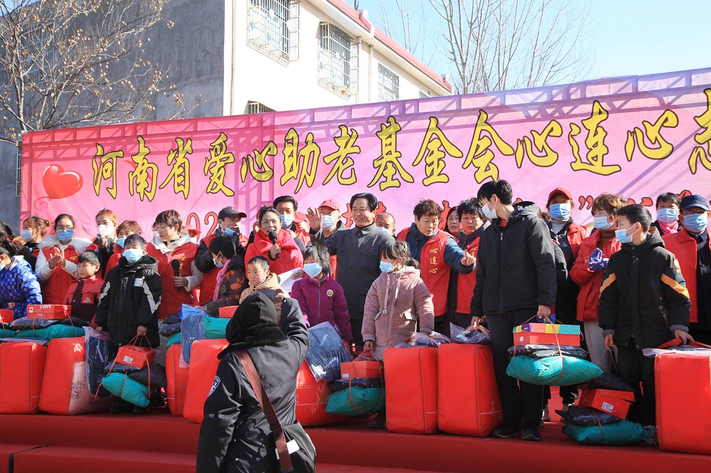2021年1月1日,在辞旧迎新,普天同庆的美好时刻,河南省爱心助老基金会心连心志愿大队,2021“关注未来,传递爱心”公益捐助活动在禹州市革命老区鸠山镇文化广场盛大举行。文化和旅游部中国东方文化研究会国学孝悌工作委员会秘书长高德魁,河南省爱心助老基金会理事吴磊,中国演艺设备技术协会河南省办事处主任尚红斌、主任专家刘政,鸠山镇副镇长郭高磊,河南省爱心公益协会心连心志愿者大队长李保亭,副大队长李伟东,《中国好人网》、河南电视台法制频道编导孙永合,中国国际新闻传媒董事长向瑞成,中原企业家杂志总编李信华、中原企业家杂志社办公室主任杨晓英等爱心单位和新闻媒体参加活动。 活动现场,热闹非凡人山人海,虽然寒风飕飕,但人们心中依然暖意融融,温情弥漫。心连心协会骨干葛惠明、王海宽、张三、徐晓、陈银芳、陈乂慧、王亭付、张小红、薛占伟、王璐璐 , 志愿者陈银芳,徐晓,张继远,郎鹏飞,苏玉青,李保,陈帅娟等 及方山镇的抗战老兵积极参与感人至深的公益活动,受捐助的100名孩子在家长的陪同下如约而至,其中年龄最小的3岁,多么可怜的小孩子!也有10来岁的大孩子,父母不在家的爷奶陪同。当领到渴望的棉衣、棉被、棉袜等物品的瞬间,有的老奶奶眼睛湿润了,哽咽着说道,还是党的政策好哇!感谢党和政府!感谢心连心的志愿者们!一位小女孩激动地对笔者说,今后我一定好好学习,做个好人,回报祖国。