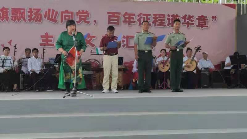 100年前,南湖红船上的一盏明灯,点燃了中华民族光明的前途。鲜红的党旗,经历了100个春秋的洗礼,显得更加飒爽多娇。庄严的党徽经历了一百载的锤炼显得坚如磐石,百年风雨兼程,百年伟业辉煌。今年是中国共产党成立100周年,为了隆重纪念党的百年华诞, 6月18日,抚顺市志愿者协会心中有爱工作站春雨艺术团携武警抚顺支队执勤四中队官兵、辽宁庆阳特种化工有限公司抚顺325库分公司职工举办联合汇演,以载歌载舞的方式为党庆生。