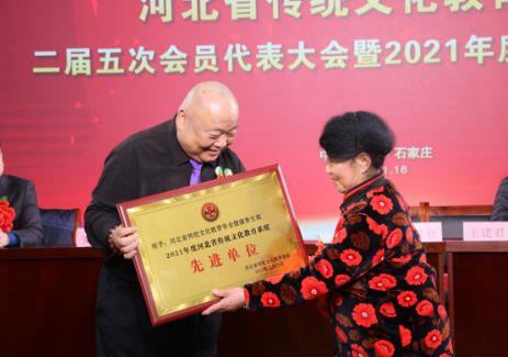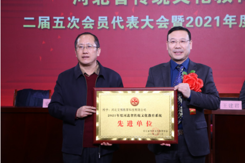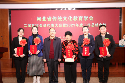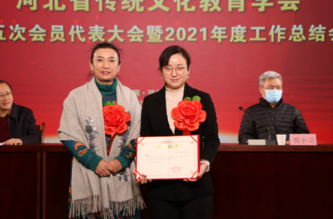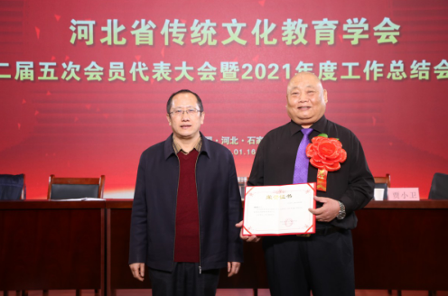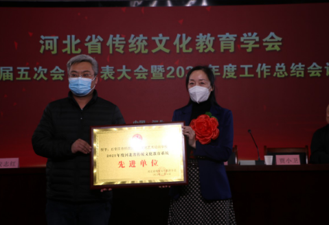 会议还对2021年度为全省传统文化教育事业做出突出贡献的河北文博教育科技有限公司、河北燕易文化传播有限公司、河北广卿文化传媒有限公司、学会健康养生部等9个单位,柳金香、彭蕾等5位优秀工作者以及安志红、燕源民、杨新媛、陈朝军等29位先进个人进行了表扬。刘占行宣读了表扬文件,刘良业、贾小卫等分别为他们颁发证书。先进单位代表彭蕾、优秀工作者代表马晓娟、先进个人代表陈朝军在会上分别发言。