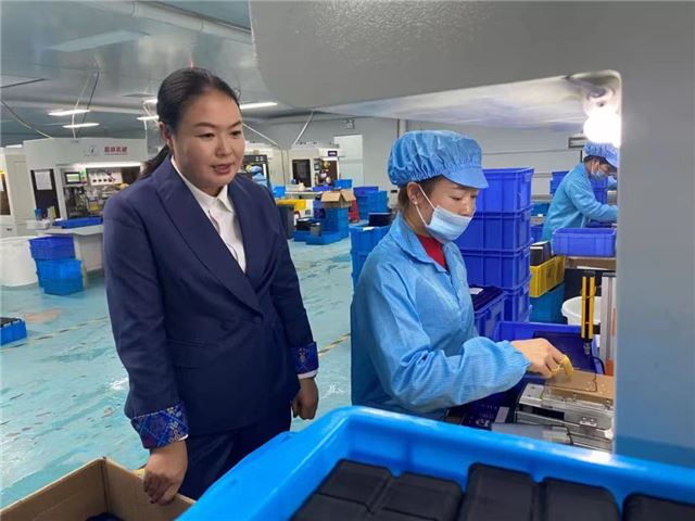 “这个椅子要加高,工人坐着才舒服”“对实食堂有啥建议?记得告诉我”“有女朋友了吗,公司会组织交友活动哦”……早上八点半,刚从广州赶回永州江华的湖南明意湖智能科技股份有限公司(以下简称“明意湖公司”)董事长李洪梅,又精神抖擞地出现在生产车间,与一线职工进行交流。
