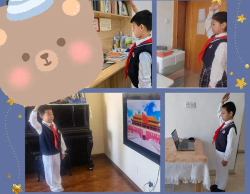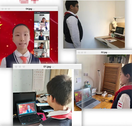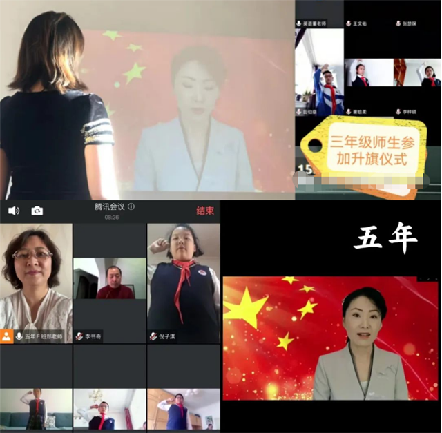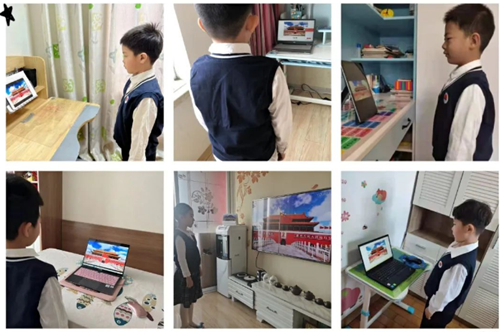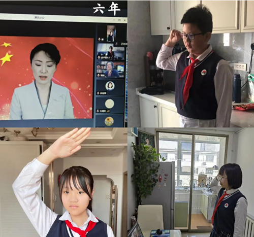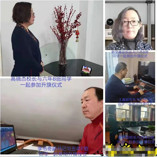 上午8点50分,解放教育集团总集团长高晓杰校长进入六年B班的线上直播群,与六年B班的同学们一起参加升旗仪式。副校级领导和任课老师们也走进了各班直播间,与孩子们共同肃立,唱响激昂的国歌。