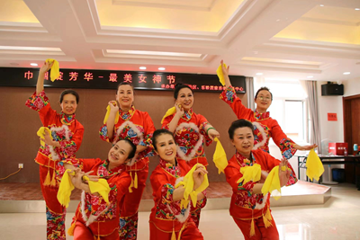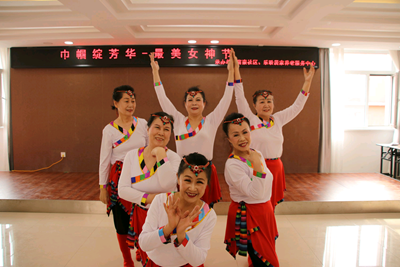 3月6日(星期一)上午9点大家陆续来到富豪社区3楼活动中心,有化妆的,有换演出服的,每个人脸上都洋溢着幸福的笑容。