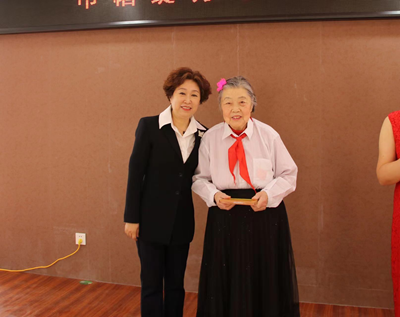 由乐聆居家养老服务中心孙树凤总经理为富豪社区87岁高龄张雅琳阿姨颁奖