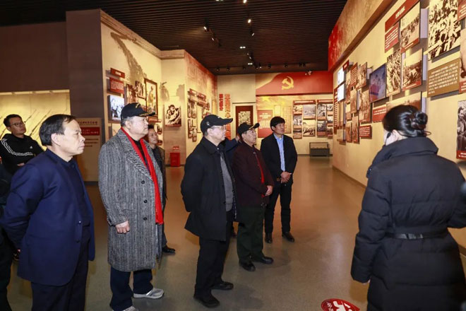 领导们走进新四军军部旧址,调研河东红色文化建设。