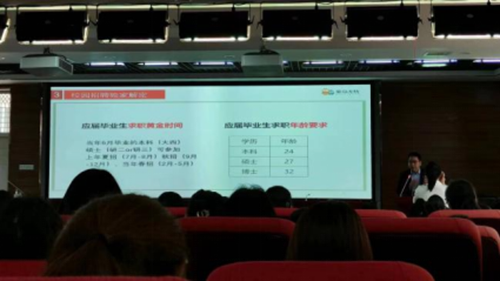 蒋青山结合实际从大学生就业形势、就业路径、就业方法、就业技巧等多方面,旁征博引、深入浅出为同学们详细的作了一场促就业的精彩报告,教会大学生们如何利用应届生的身份考央国企岗位的优势和技巧。