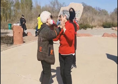 在不知不觉中10点钟到达包拉温都,“真好看!”老人们到达包拉温都后,不约而同地发出感叹。包拉温都,蒙语译为“紫色的山岗”,自古以来就是杏花的天堂,漫山的天然山杏树远离城市的喧嚣,花枝招展,随风颤动,像一片片漂浮的云朵,仿佛来到人间仙境,让人乐此不疲、流连忘返。大家情不自禁的跳起舞蹈,拍照。