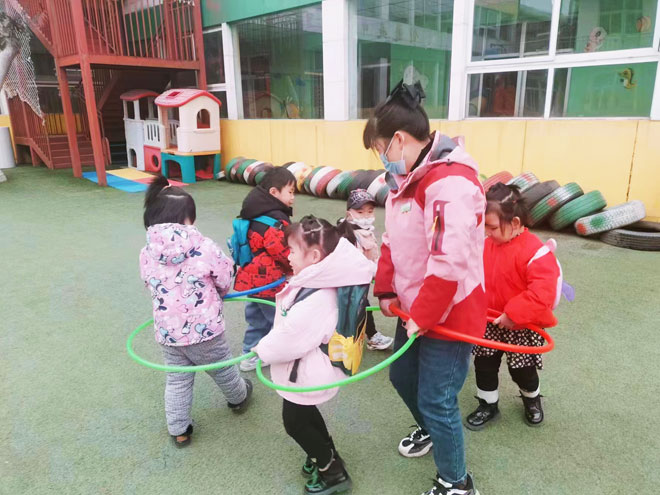 走进幼儿园,就像走进了一个绿植花园,处处都有旺盛的花草,连教室里每个桌子上都有一盆花草陪在孩子身边,又像走进了一个城堡游戏乐园,滑梯、云梯、轮胎、滚桶等各种各样的玩具遍布院子,孩子玩起来方便极了,让孩子们在自然环境中感受成长的乐趣。最有意思的是,每天使用这些玩具创编“翻山越岭来上学”趣味入园活动,孩子每天早上来上学都像玩一次魔法运动游戏,刚起床的迷困味一下子就没有了,丰富的蹦、跑、爬、钻等运动活动更促进了孩子们的感统协调。为了孩子的快乐与健康,幼儿园真是太用心啦!