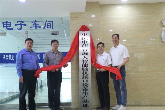 活动现场,“中国中药谷海天智能脑机接口设备生产基地”正式挂牌,潍坊市卫健委一级调研员李迎春,中国中药谷董事长、潍坊市浙商联合会会长周方旺,泰安卫健委、产业链陈涛、海天智能总经理张海峰出席仪式并揭牌。