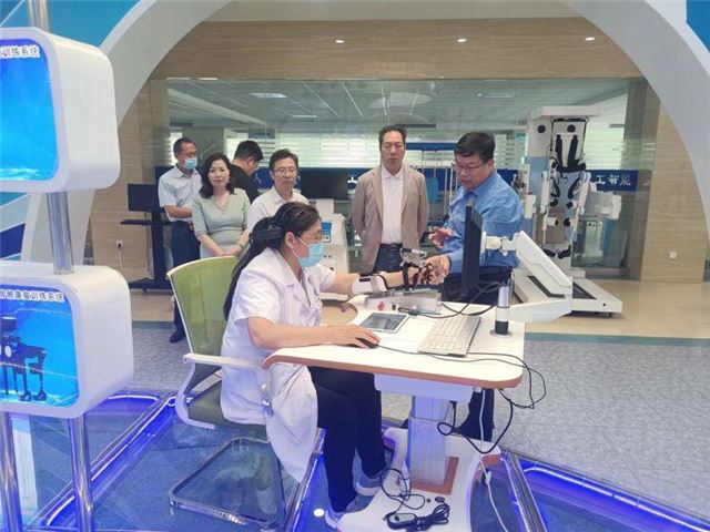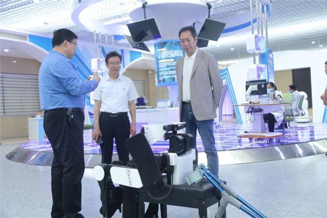 现场参观考察了海天智能医疗大健康数据中心,在听取了企业智慧养老服务发展情况以及“海天神康精准智慧康养服务平台”建设情况的汇报,详细了解了海天智能智慧化康复设备的研发及推广应用后,潍坊市卫健委一级调研员李迎春主任对此次中国中药谷与海天智能战略合作的意义高度认可并充分肯定。