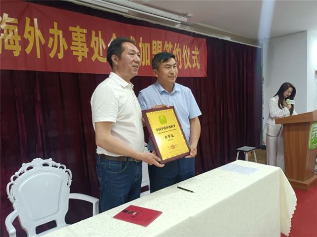2023.5.20下午,于中国中药谷大厦,在潍坊市市委统战部领导和市卫健委领导的陪同下,在中国中药谷合伙人美国办事处负责人、全美山东同乡会联合会会长王立智的带领下,13家海外负责人参加了2023中国中药谷海外办事处全球加盟签约仪式。同时迎来了中国老兵携中药谷共创军民融合发展部揭牌仪式。