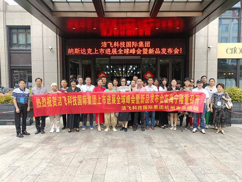 浙江讯(洪旭朝 通讯员周云霞)日前,洁飞科技国际集团纳斯达克上市进展全球峰会暨新品发布会在浙江省海宁市隆重召开。洁飞科技国际集团(香港)有限公司、江苏飞水科技有限公司、湖南洁飞科技集团有限公司、湖南飞水科技有限公司、芷江美哆哆清泉科技有限公司以及浙江、福建、山东、杭州、绍兴、宁波、台州、嘉兴、娄底、邵阳等全国各地的省级、市级代理经销商共三百余人参加。