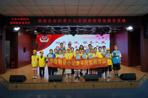 8月9日,朝阳沟强戒所来了一群特殊的小客人,他们身着黄色和蓝色马甲,顽皮、活泼的身影为庄严的警营增添了一抹靓丽色彩。这群孩子来自长春科普小记者团,该团成立于2018年,隶属于长春市科普作家协会,团员由26所小学的120余名优秀学生代表组成,致力于为全市小学生开展科普宣传教育。30名团员利用假期走进戒毒所,目的是向“蒲公英”禁毒宣讲团的警官们学习禁毒知识、切磋讲课技艺,从科普角度向小学生传播禁毒知识,让大家度过一个安全无毒的假期。