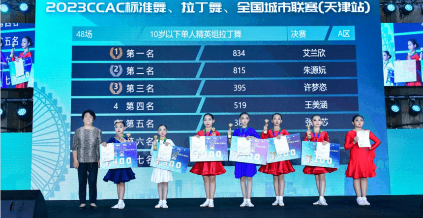 经过激烈比拼,天津毅松曼艺艺术培训学校的杨婧彤获得 7岁以下单人精英组拉丁舞冠军;许昌嘉伦舞蹈的苏芮萱获得8岁以下单人精英组拉丁舞冠军;天津毅松曼艺艺术培训学校的姚梓淇获得9岁以下单人精英组拉丁舞冠军;天津艺阳国际体育舞蹈的艾兰欣获得10岁以下单人精英组拉丁舞冠军;天津毅松曼艺艺术培训学校的陈证嘉、周欣潼、赵杨美欣分别获得12岁以下、14岁以下和16岁以下单人精英组拉丁舞冠军;陈证嘉获得精英拉丁舞王冠军;北京畅舞Dance Studio的郜爱军、张鸣凤获得职业组摩登舞冠军。