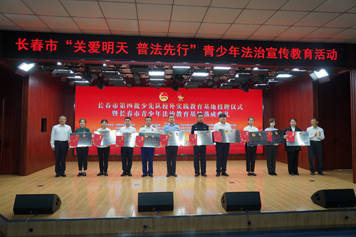 金秋送爽,丹桂飘香。长春市第四批少先队校外实践教育基地授牌暨长春市青少年法治教育基地落成典礼,在一片欢声笑语和热烈持久的掌声中落下帷幕。9月22日这天,对于长春市朝阳沟禁毒教育基地而言,不仅喜添了“少先队校外实践教育基地”和“长春市青少年法治教育基地”两个响亮的名字,更重要的是禁毒工作的内涵和外延也得到了有效拓展,必将担负起青少年法治教育和推进法治长春建设的历史重任。
