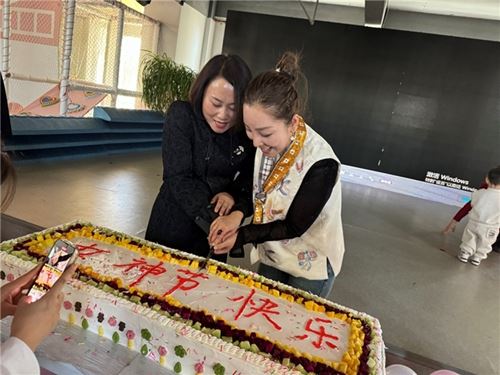 闫丽园长为幼儿园全体教师及容拳道教练团切蛋糕