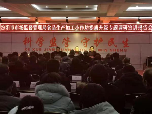 观摩结束后,全体观摩人员返回汾阳市场监管局五楼会议室召开了食品生产加工小作坊提质升级专题调研宣讲报告会。会议由该局副局长景文旺主持。