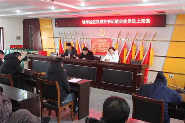 三农电视台安徽讯 12月22日,安徽省阜阳市太和县城关镇城南社区以社区党总支书记为全体党员上党课为契机,组织社区全体党员学习党的十九届五中全会精神。