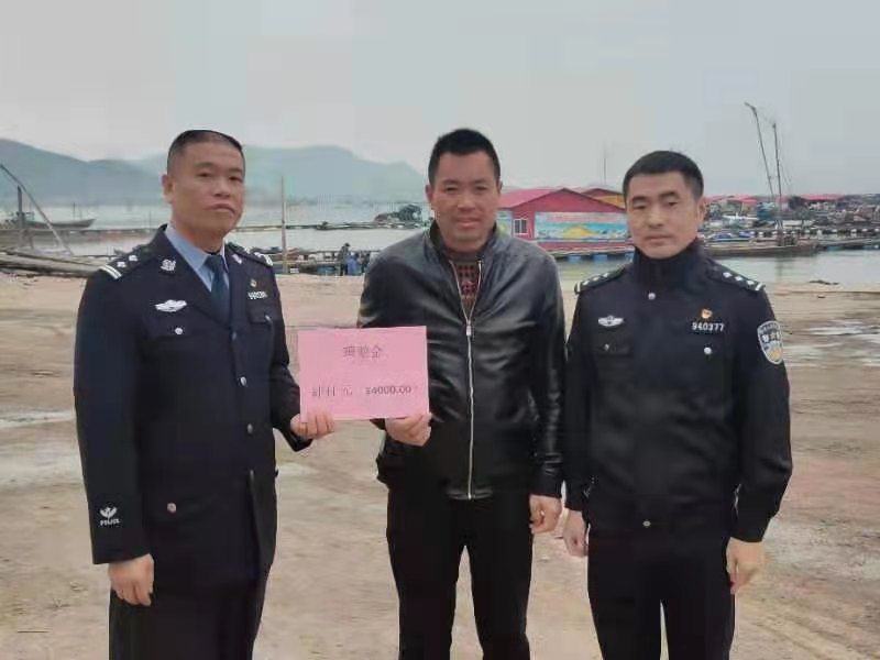 2020年10月19日,洪某佺(男,46岁)在下浒镇上沃村马坑码头搬运黄鱼饵料时不慎摔倒,造成右手骨折。下浒派出所民警协同保险公司第一时间介入,在收集好参保人有关材料后报送保险办理理赔手续。“镇政府和公安牵头我们购买的这份‘海上保险’,对我们开展海上生产的雇主和雇工都是一件大好事。它就像一颗‘定心丸’一样,今后再有发生海上作业事故,我们都有了主心骨,也不怕因为赔偿问题产生分歧、引发矛盾了”,2021年1月7日,雇主余某元领到理赔金时欣慰道,“海上保险”不仅保费低,赔偿金额高,还能有效帮助养殖场转移风险,缓冲意外来临的经济压力。