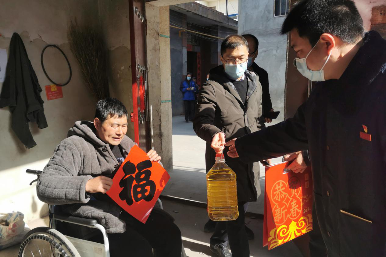 2月3日,在2021年新春来临之际,洛阳市税务局党委委员、副局长杨建军带领相关科室,到定点帮扶村汝阳县十八盘乡刘沟村,对驻村干部和困难群众进行走访慰问,为他们送去大米、食用油和新春对联等慰问品,并带去新春的温暖和祝福。