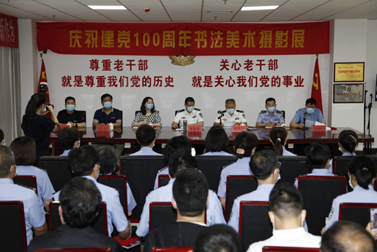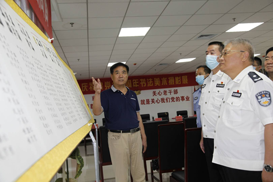 河北邯郸讯(文/图/叶小芮/任锡良/责编/韩同瑞)为庆祝中国共产党建党100周年华诞,回顾中国共产党艰苦卓绝的创业历程,讴歌党的丰功伟绩,展现举世瞩目的伟大成就。2021年6月10日上午由邯郸市公安局政治部主办、公安文联、老干部处协办的建党100周年书法、美术、摄影展在市公安局老干部活动中心开幕。市局党委委员、政治部主任孙保堂、市公安局文联主席孔祥江等领导出席。