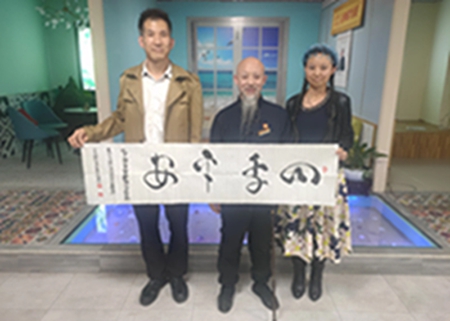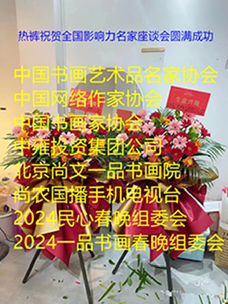 现场艺术家嘉宾纷纷拿出自己的优秀书画作品同合作企业家合影留念。(网络作家王克强、王世明、田进军主编)