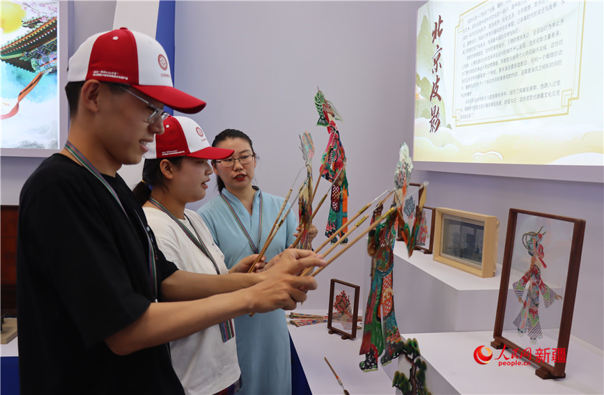 皮影表演艺术吸引不少观众前来学习。人民网 李龙摄