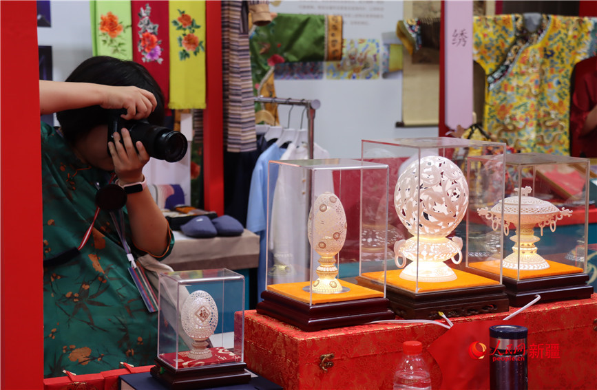 精美的非遗展品吸引不少人前来打卡拍照。人民网 李龙摄