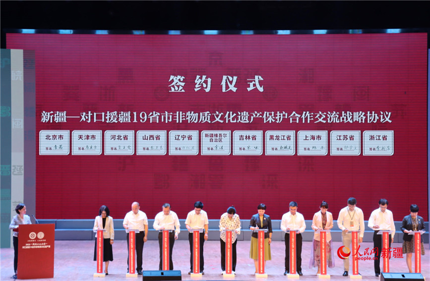 当天,同期举行新疆对口援疆19省市非物质文化遗产保护合作交流战略协议签约仪式。