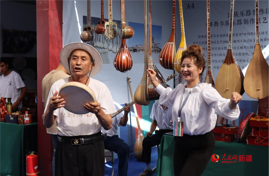 参展人员跟随着手鼓的节奏载歌载舞。人民网 李龙摄