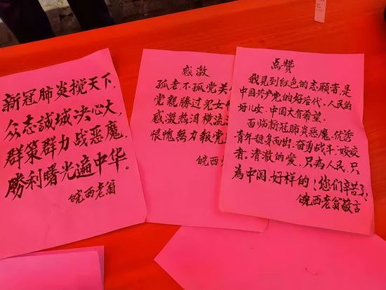 老人心存感激,便接连写下了三封感谢信,感谢社区工作人员和志愿者们用坚守、用执着、用勇敢,在感谢心里称赞道:我见到红色的志愿者是中国共产党的好后代,人民的好儿女,中国大有希望。